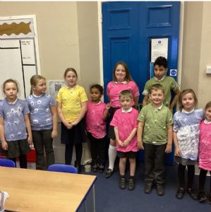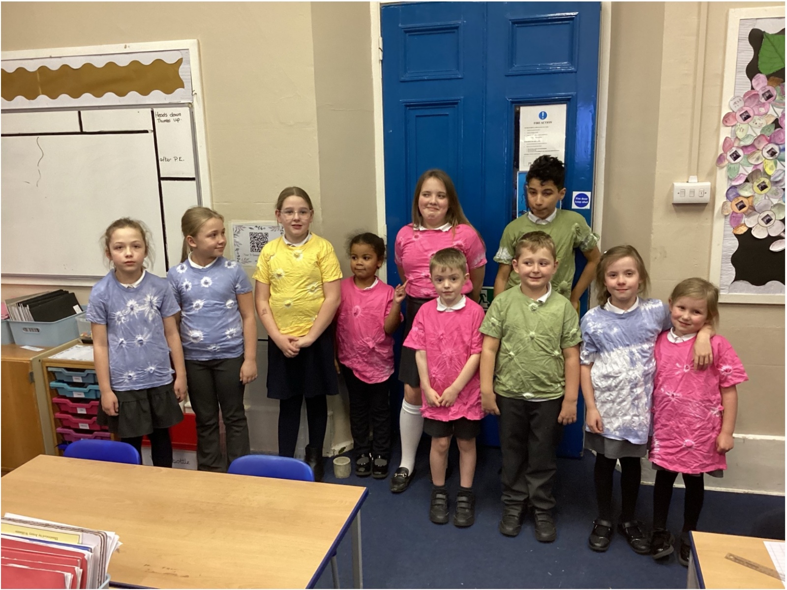 The children have had fun and been busy and creative using tie-dying this term. They have used various techniques, including folding, pleating, pocketing, marbles, coins or pebbles with elastic bands/string.